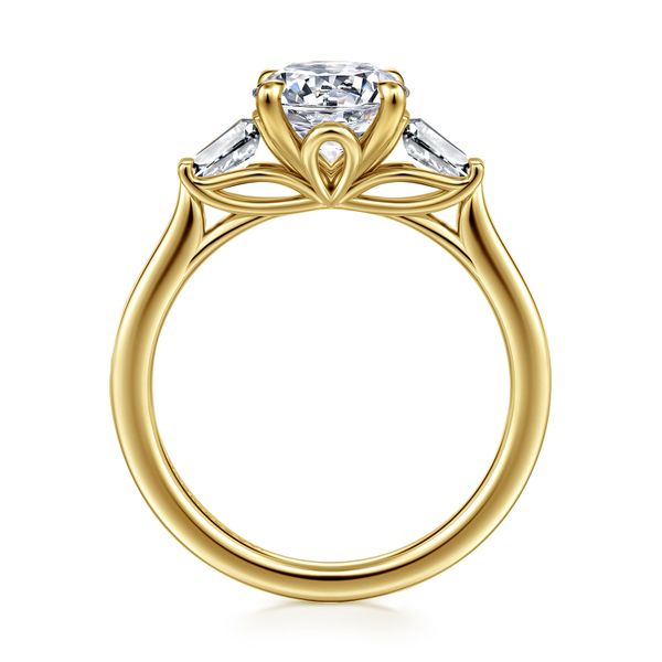 14K Yellow Gold Oval Three Stone Lotus Diamond Engagement Ring