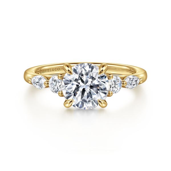 14K Yellow Gold Round Five Stone Diamond Engagement Ring