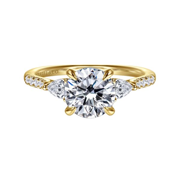 14K Yellow Gold Round Three Stone Lotus Diamond Engagement Ring