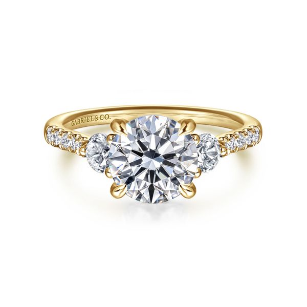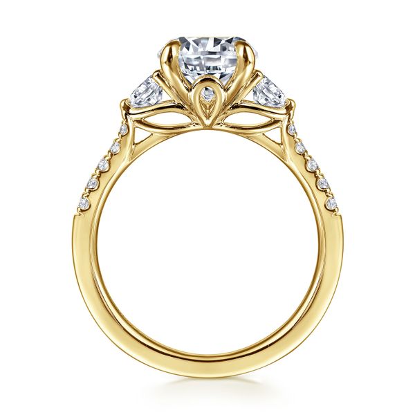 14K Yellow Gold Round Three Stone Lotus Diamond Engagement Ring