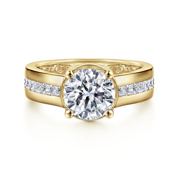 14K Yellow Gold Wide Band Round Diamond Engagement Ring