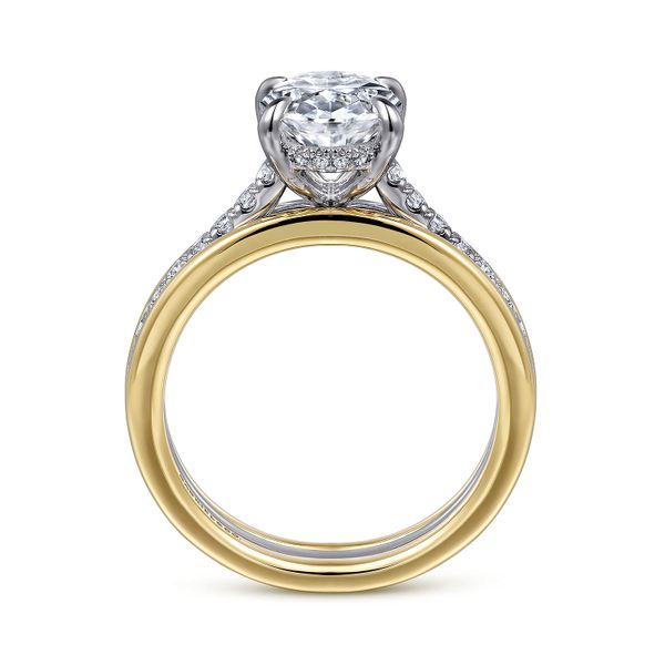 14K Yellow-White Gold Wide Band Oval Diamond Engagement Ring