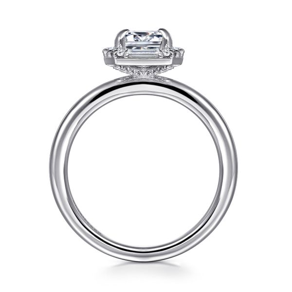 3. Art Deco 14K White Gold Halo Emerald Cut Diamond Engagement Ring