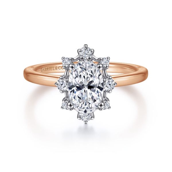 3. Unique 14K White-Rose Gold Halo Diamond Engagement Ring