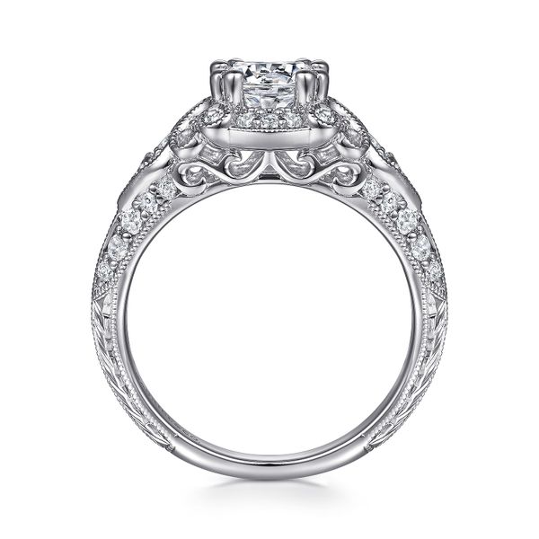 Vintage Inspired 14K White Gold Fancy Halo Round Diamond Engagement Ring