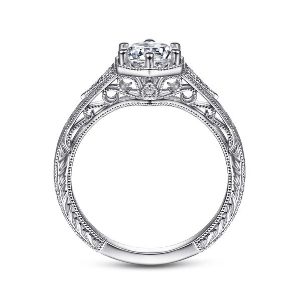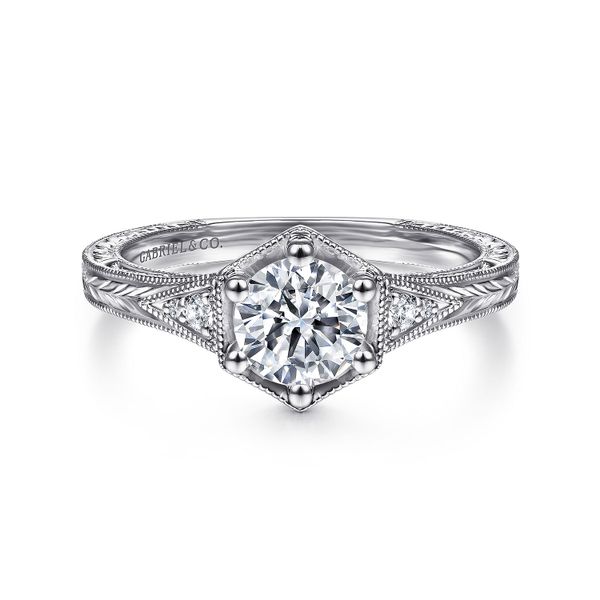 Vintage Inspired 14K White Gold Round Diamond Engagement Ring