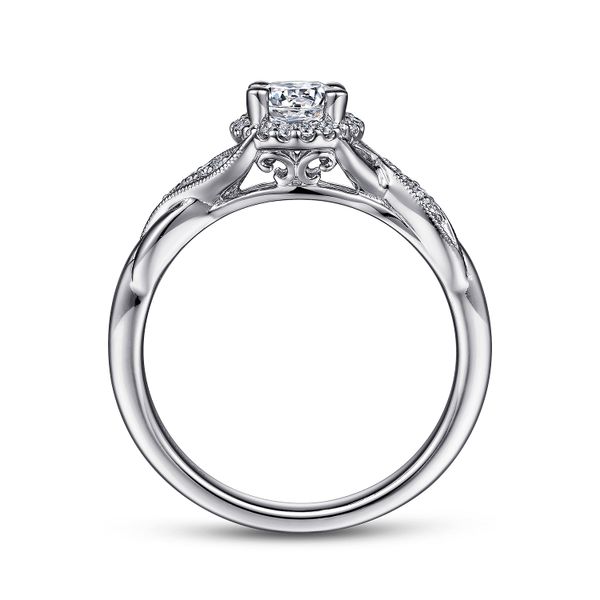 Vintage Inspired 14K White Gold Round Halo Diamond Engagement Ring