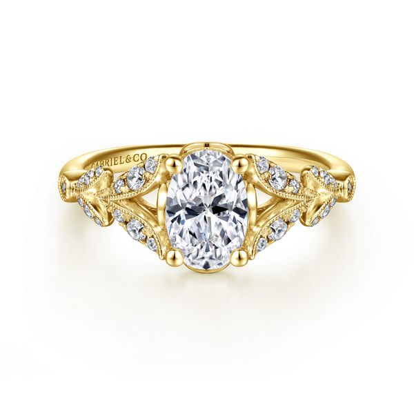 Vintage Inspired 14K Yellow Gold Split Shank Oval Diamond Engagement Ring