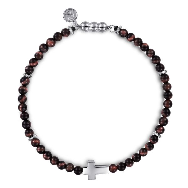 925 Sterling Silver Cross Bracelet with 4mm Tiger Eye Beads J.A. Jewelers & Company, Inc. FARMINGTON, NM