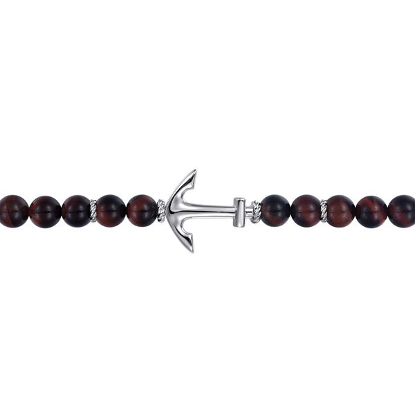 Sterling Silver and 8mm Tiger Eye Beaded Bracelet with Anchor Image 2 J.A. Jewelers & Company, Inc. FARMINGTON, NM
