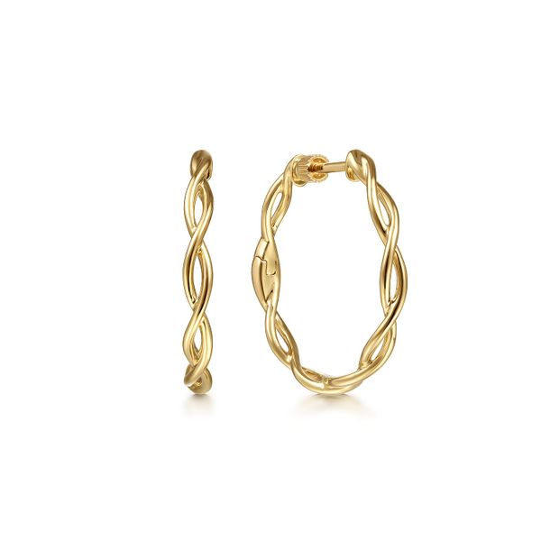 14K Yellow Gold 25mm Twisted Classic Round Hoop Earrings J.A. Jewelers & Company, Inc. FARMINGTON, NM