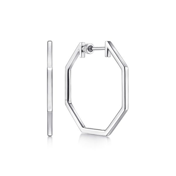 925 Sterling Silver Geometric Classic Hoop Earrings Image 2 J.A. Jewelers & Company, Inc. FARMINGTON, NM