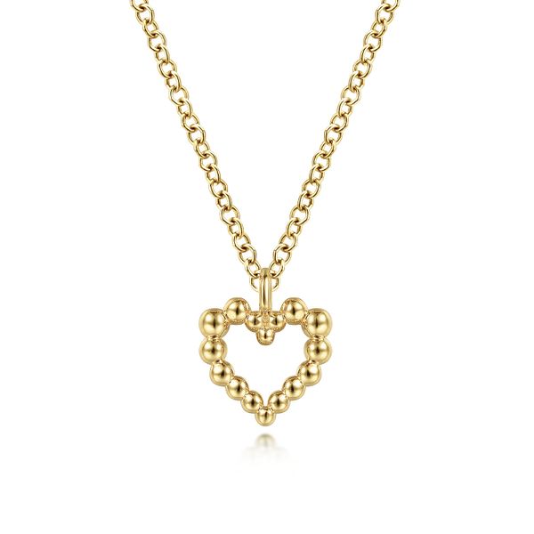 14K Yellow Gold Bujukan Bead Open Heart Pendant Necklace J.A. Jewelers & Company, Inc. FARMINGTON, NM