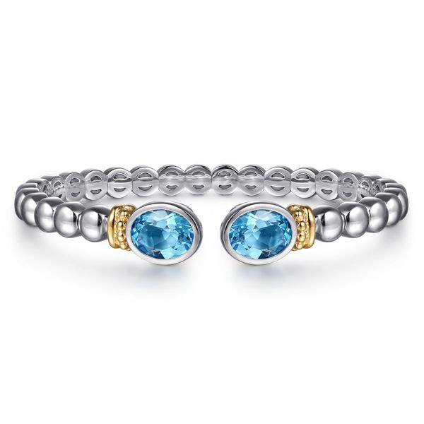 14K Yellow Gold and 925 Sterling Silver Bujukan Blue Topaz Open Bangle Bracelet J.A. Jewelers & Company, Inc. FARMINGTON, NM
