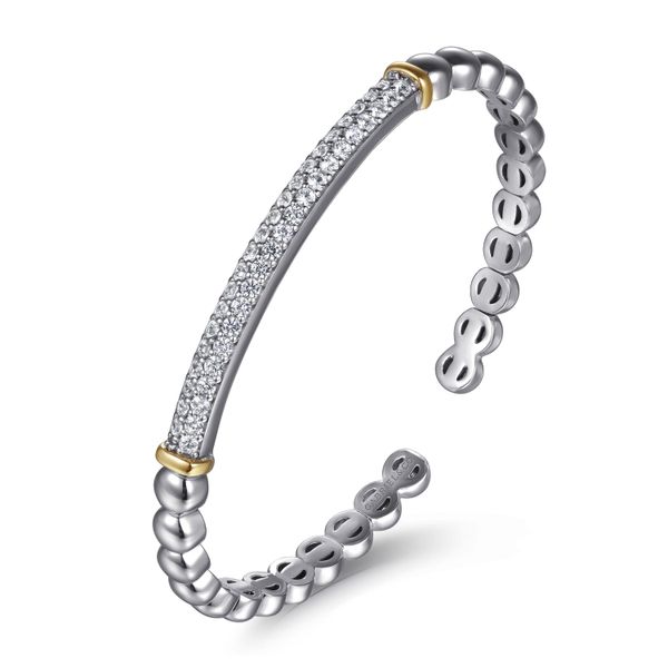 14K Yellow Gold and 925 Sterling Silver Bujukan White Sapphire Open Bangle Bracelet Image 2 J.A. Jewelers & Company, Inc. FARMINGTON, NM