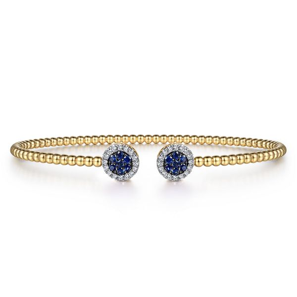 14K Yellow Gold Bujukan Bead Cuff Bracelet with Sapphire and Diamond Halo Caps J.A. Jewelers & Company, Inc. FARMINGTON, NM