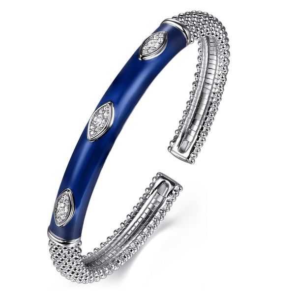 925 Sterling Silver Bujukan White Sapphire Split Bangle with Chrome Blue Enamel J.A. Jewelers & Company, Inc. FARMINGTON, NM