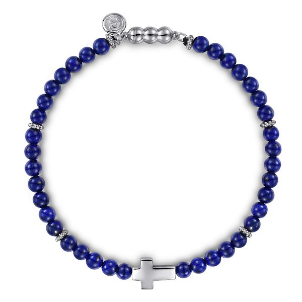 925 Sterling Silver Cross Bracelet with 4mm Lapis Beads J.A. Jewelers & Company, Inc. FARMINGTON, NM
