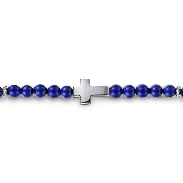 925 Sterling Silver Cross Bracelet with 4mm Lapis Beads Image 2 J.A. Jewelers & Company, Inc. FARMINGTON, NM