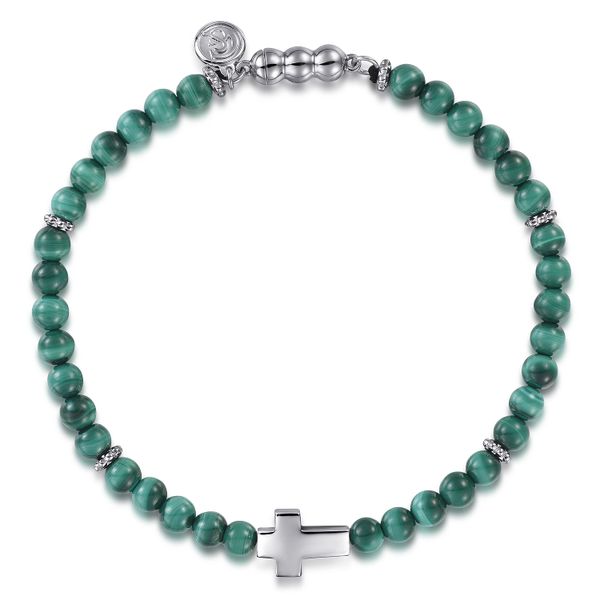 925 Sterling Silver Cross Bracelet with 4mm Malachite Beads J.A. Jewelers & Company, Inc. FARMINGTON, NM
