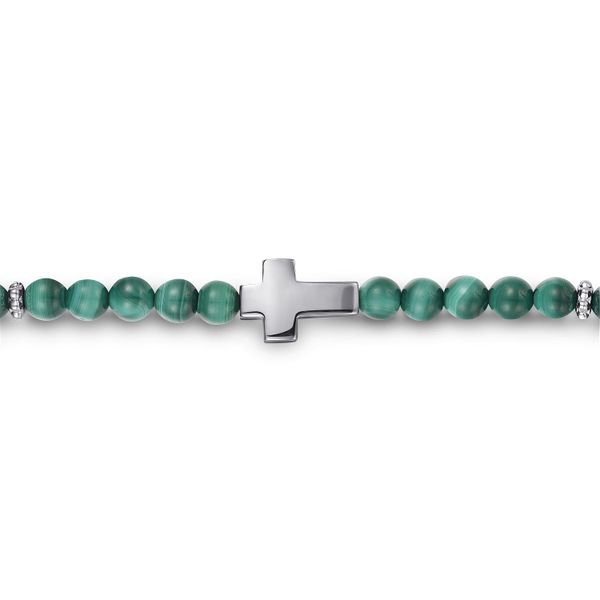 925 Sterling Silver Cross Bracelet with 4mm Malachite Beads Image 2 J.A. Jewelers & Company, Inc. FARMINGTON, NM