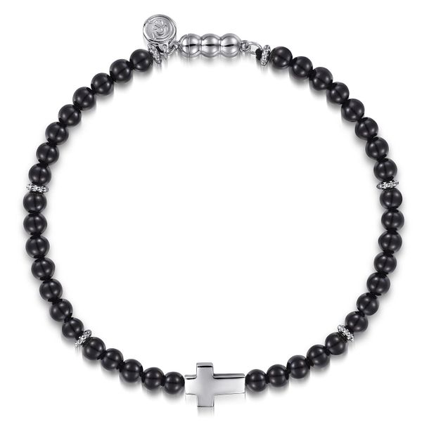 925 Sterling Silver Cross Bracelet with 4mm Onyx Beads J.A. Jewelers & Company, Inc. FARMINGTON, NM