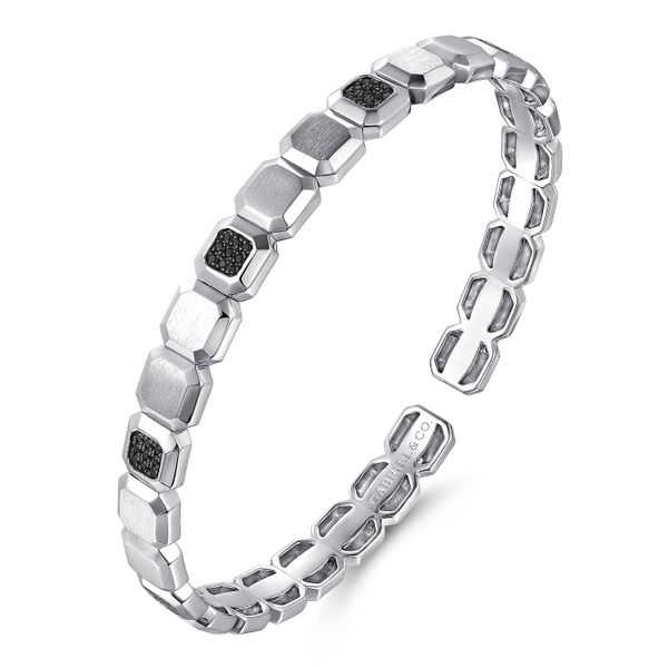 925 Sterling Silver Geometric Open Cuff Bracelet With Black Spinel Stations Image 2 J.A. Jewelers & Company, Inc. FARMINGTON, NM