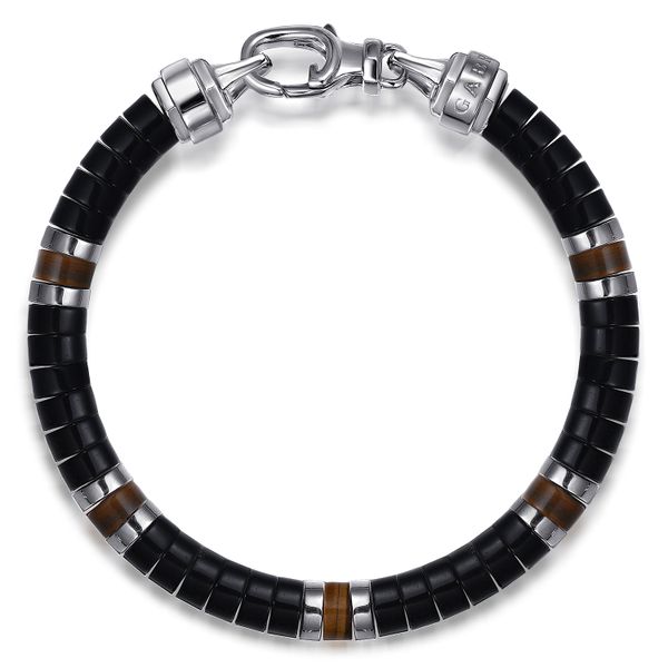 925 Sterling Silver Onyx and Tiger Eye Cylinder Beaded Bracelet J.A. Jewelers & Company, Inc. FARMINGTON, NM