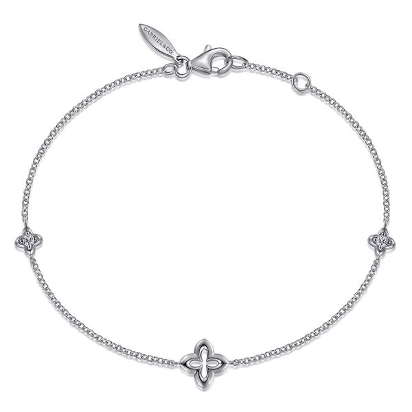 925 Sterling Silver White Sapphire Clover Station Bracelet J.A. Jewelers & Company, Inc. FARMINGTON, NM