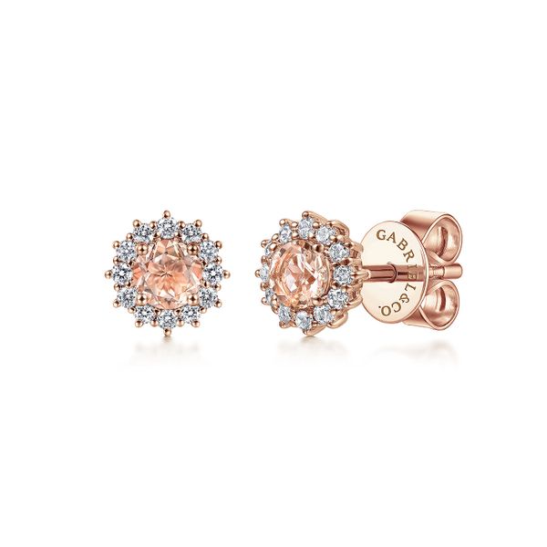 14K Rose Gold Round Morganite and Diamond Stud Earrings J.A. Jewelers & Company, Inc. FARMINGTON, NM