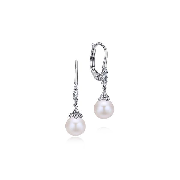 14K White Gold Pave Diamond Pearl Drop Earrings Image 2 J.A. Jewelers & Company, Inc. FARMINGTON, NM