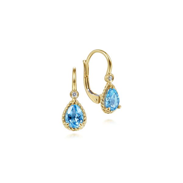 14K Yellow Gold Diamond and Blue Topaz Earrings Image 2 J.A. Jewelers & Company, Inc. FARMINGTON, NM