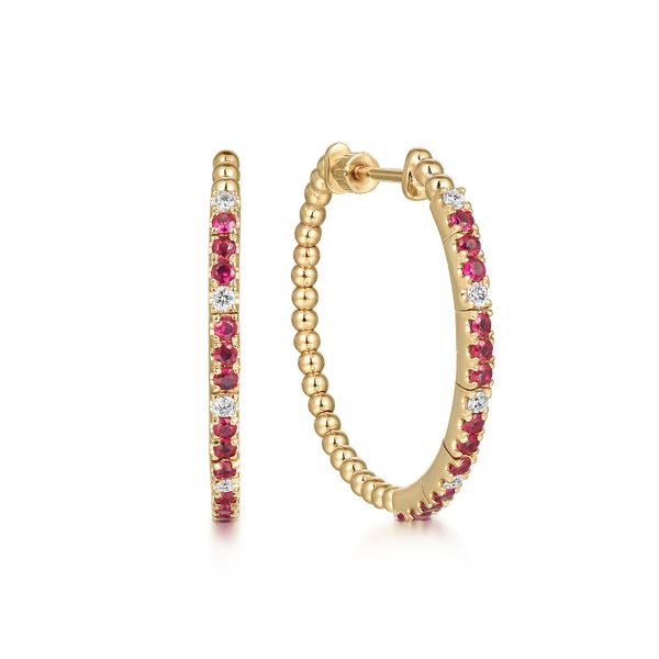 14K Yellow Gold Diamond and Ruby Bujukan 30mm Classic Hoop Earrings J.A. Jewelers & Company, Inc. FARMINGTON, NM
