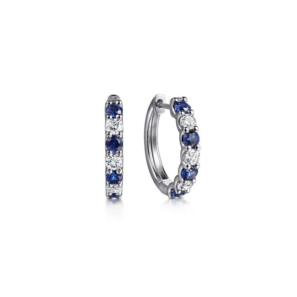 15mm 14K White Gold Diamond and Sapphire Huggie Earrings J.A. Jewelers & Company, Inc. FARMINGTON, NM