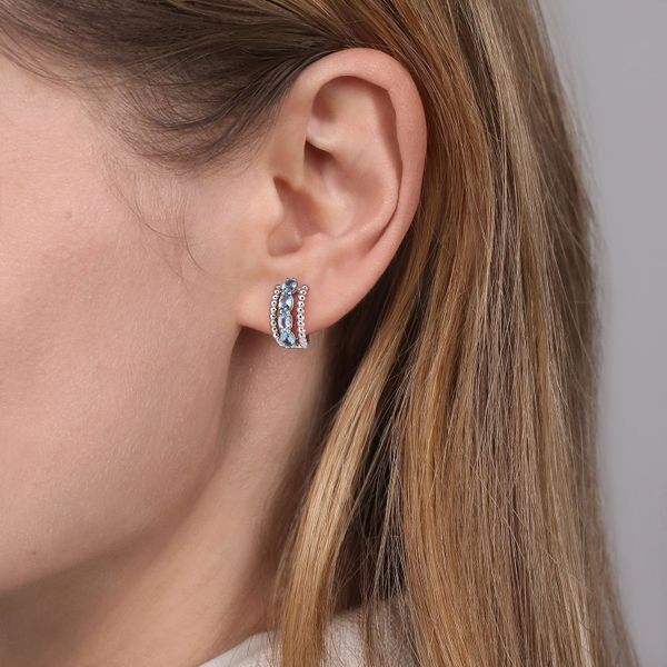 925 Sterling Silver Swiss Blue Topaz Huggie Earrings Image 2 J.A. Jewelers & Company, Inc. FARMINGTON, NM
