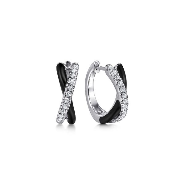 925 Sterling Silver White Sapphire Criss Cross Huggies with Black Enamel J.A. Jewelers & Company, Inc. FARMINGTON, NM