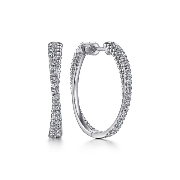 925 Sterling Silver White Sapphire Twisted Bujukan 30mm Classic Hoop Earrings J.A. Jewelers & Company, Inc. FARMINGTON, NM