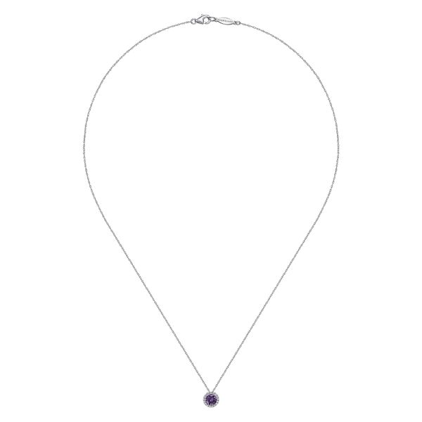 14K White Gold Amethyst and Diamond Halo Pendant Necklace Image 2 J.A. Jewelers & Company, Inc. FARMINGTON, NM