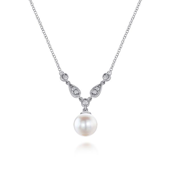 14K White Gold Cultured Pearl and Diamond Accent Necklace J.A. Jewelers & Company, Inc. FARMINGTON, NM