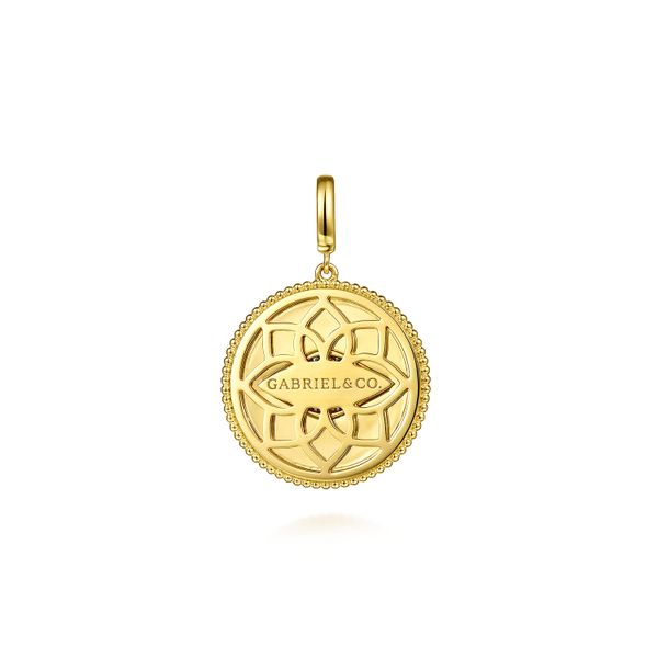 14K Yellow Gold Diamond & Sapphire Evil Eye Medallion Pendant With Detachable Bail Image 2 J.A. Jewelers & Company, Inc. FARMINGTON, NM
