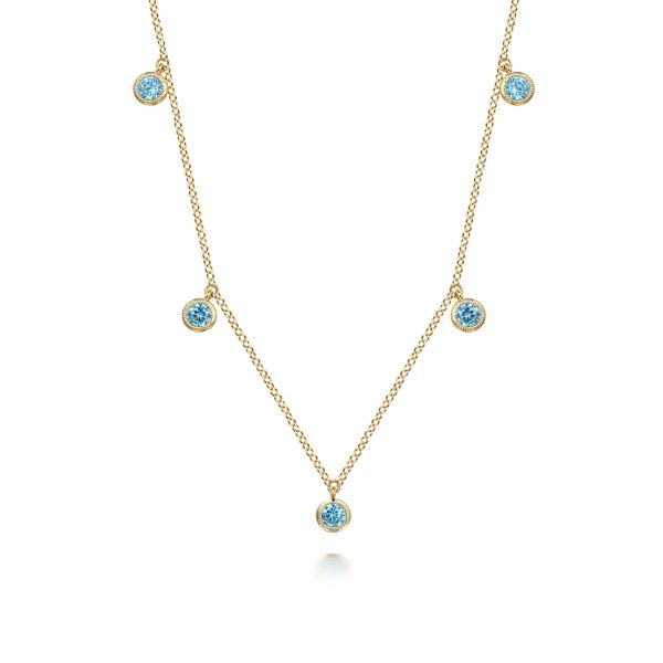 14K Yellow Gold London Blue Topaz Station Necklace Image 2 J.A. Jewelers & Company, Inc. FARMINGTON, NM