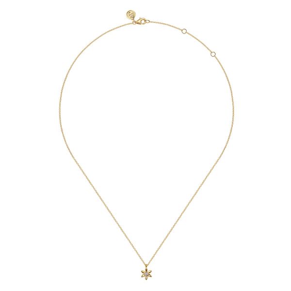 14K Yellow Gold White Sapphire Floral Pendant Necklace Image 2 J.A. Jewelers & Company, Inc. FARMINGTON, NM