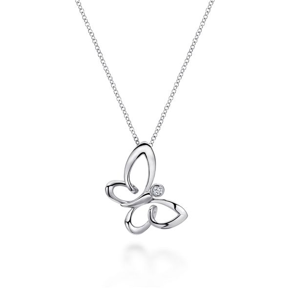 18 inch 925 Sterling Silver White Sapphire Sideways Butterfly Pendant Necklace J.A. Jewelers & Company, Inc. FARMINGTON, NM
