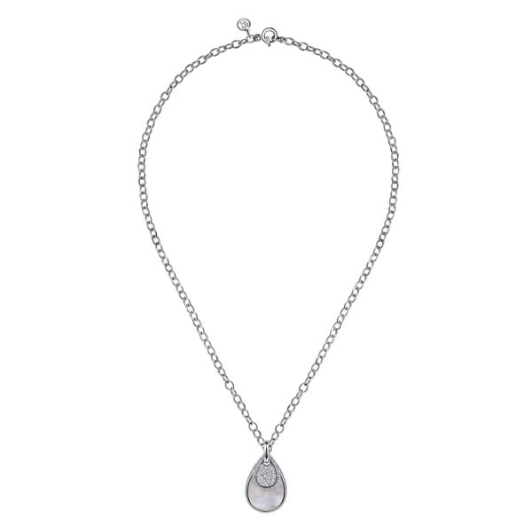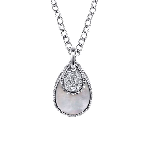925 Sterling Silver Bujukan White Sapphire and White Mother of Pearl Teardrop Pendant Necklace J.A. Jewelers & Company, Inc. FARMINGTON, NM