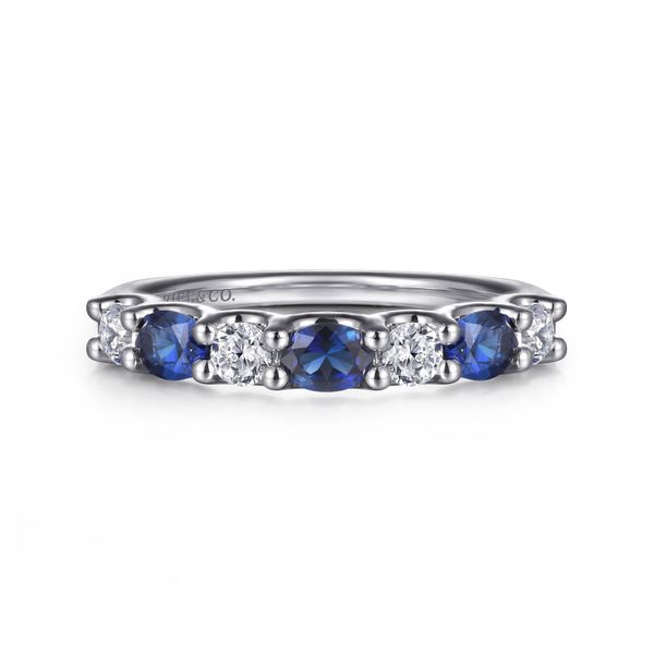 14K White Gold Diamond and Oval Sapphire Band Ring J.A. Jewelers & Company, Inc. FARMINGTON, NM