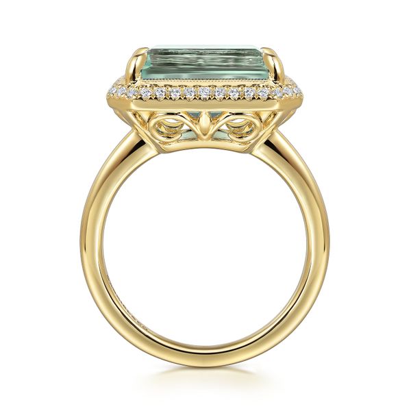 14K Yellow Gold Diamond and Green Amethyst Emerald Cut Ladies Ring With Flower Pattern Gallery Image 2 J.A. Jewelers & Company, Inc. FARMINGTON, NM