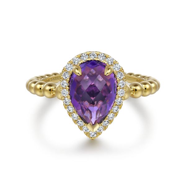 14K Yellow Gold Pear Shape Amethyst with Diamond Halo Ring J.A. Jewelers & Company, Inc. FARMINGTON, NM