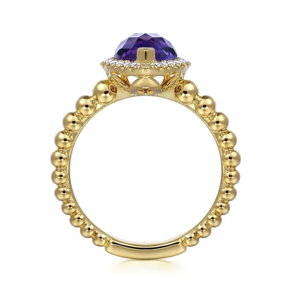14K Yellow Gold Pear Shape Amethyst with Diamond Halo Ring Image 2 J.A. Jewelers & Company, Inc. FARMINGTON, NM