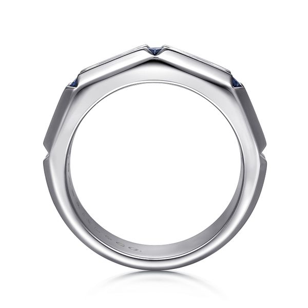 925 Sterling Silver Ring with Princess Cut Sapphire B quality Stations in Horizontal Brush Finish Image 2 J.A. Jewelers & Company, Inc. FARMINGTON, NM