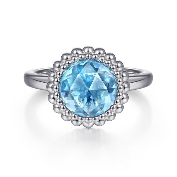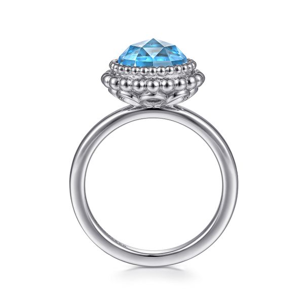 925 Sterling Silver Round Blue Topaz Bezel Set Ring with Bujukan Bead Halo J.A. Jewelers & Company, Inc. FARMINGTON, NM